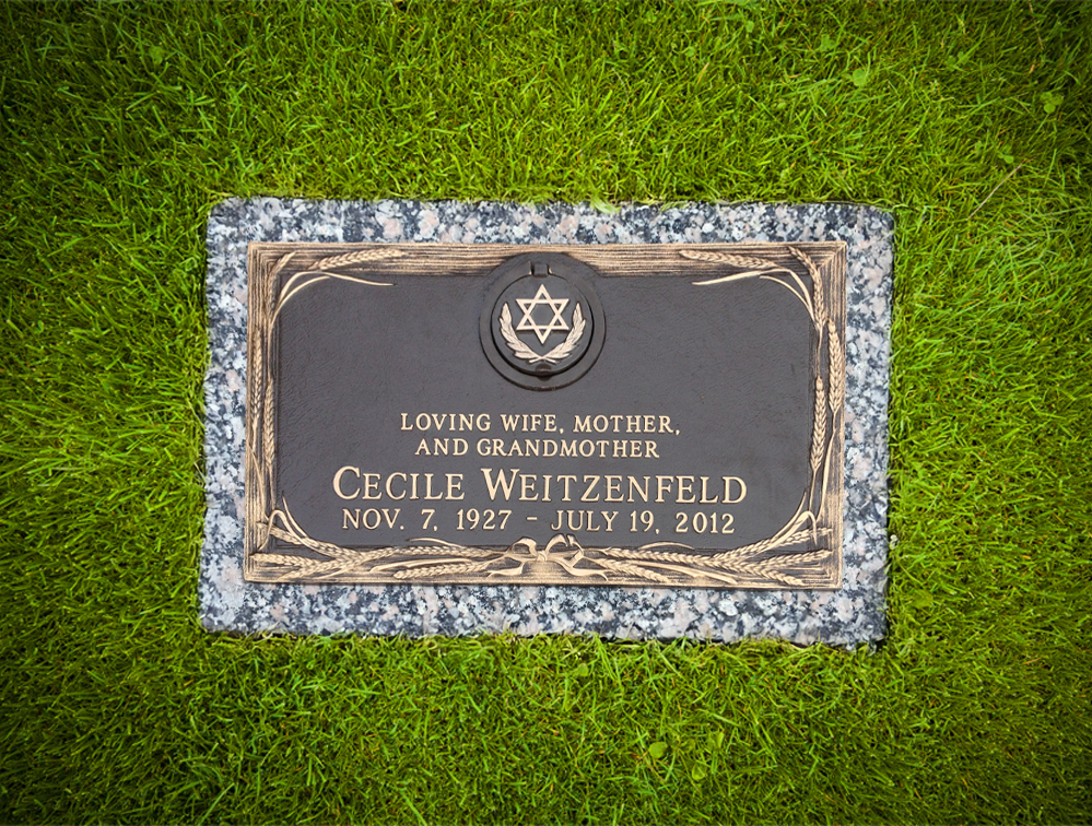Bronze headstone with Jewish design