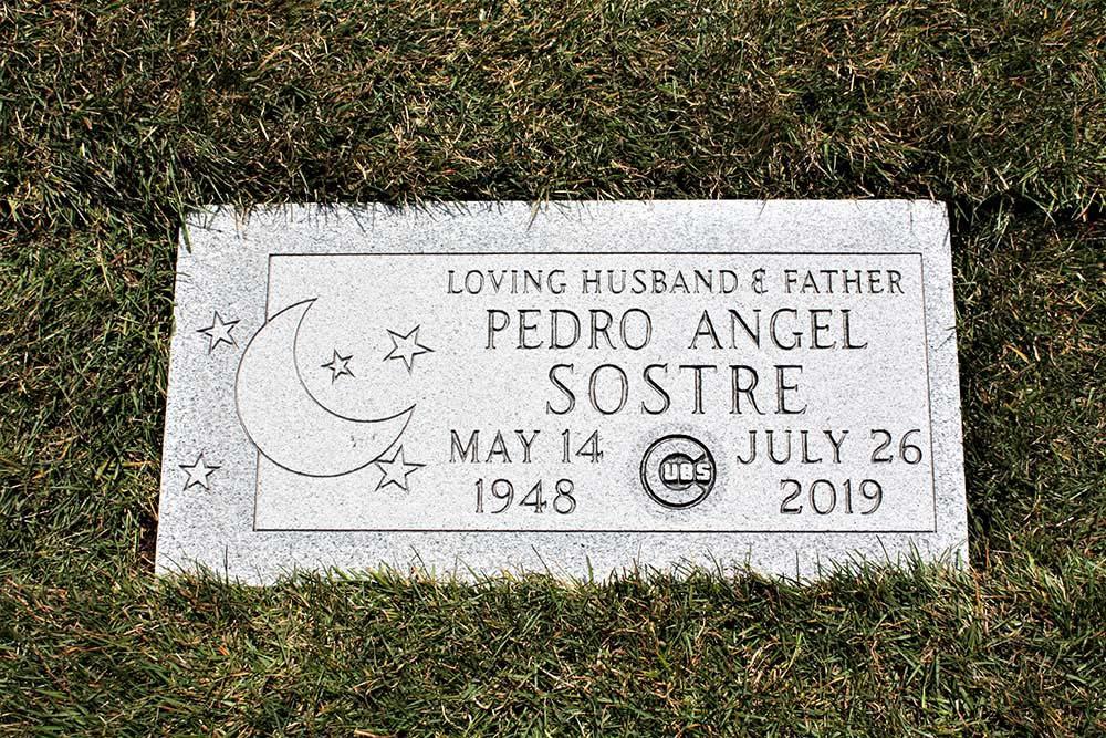 Grey granite marker with moon, stars and Cubs logo