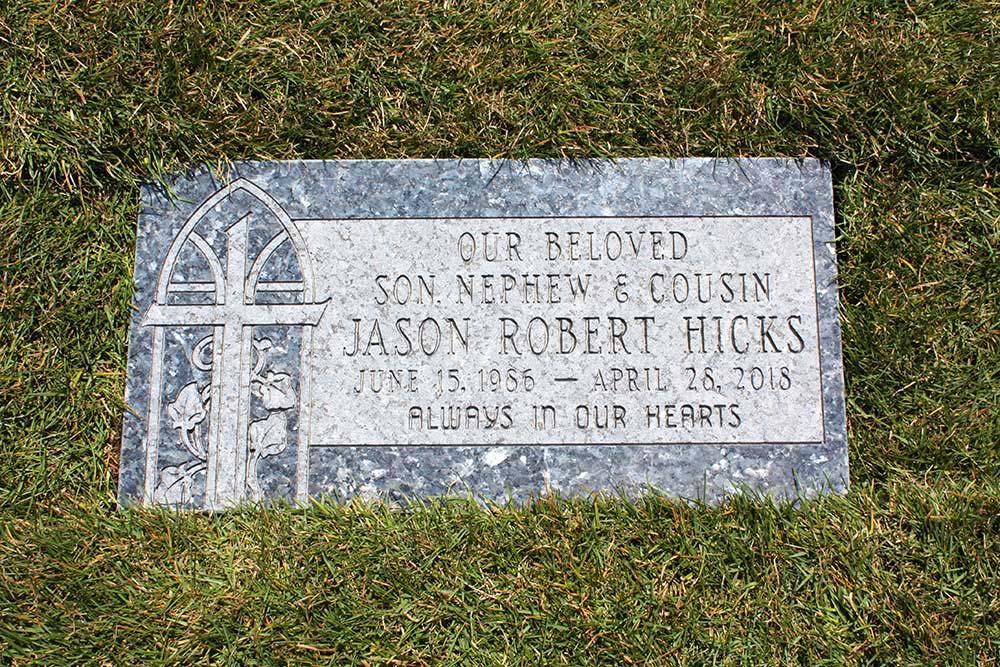 Single blue granite marker with cross and ivy
