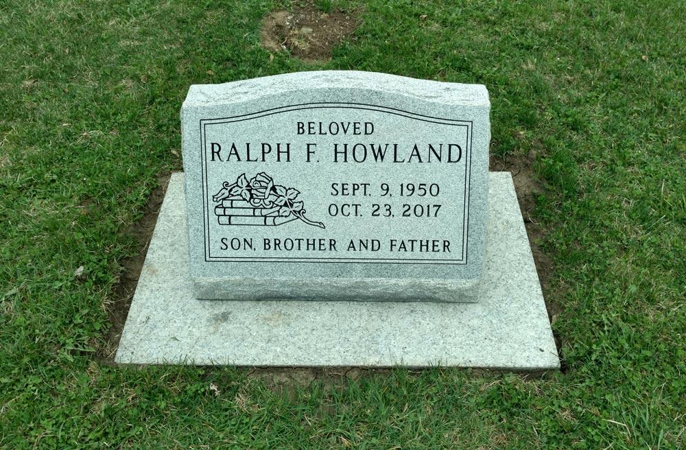 Grey granite single slant with books and rose
