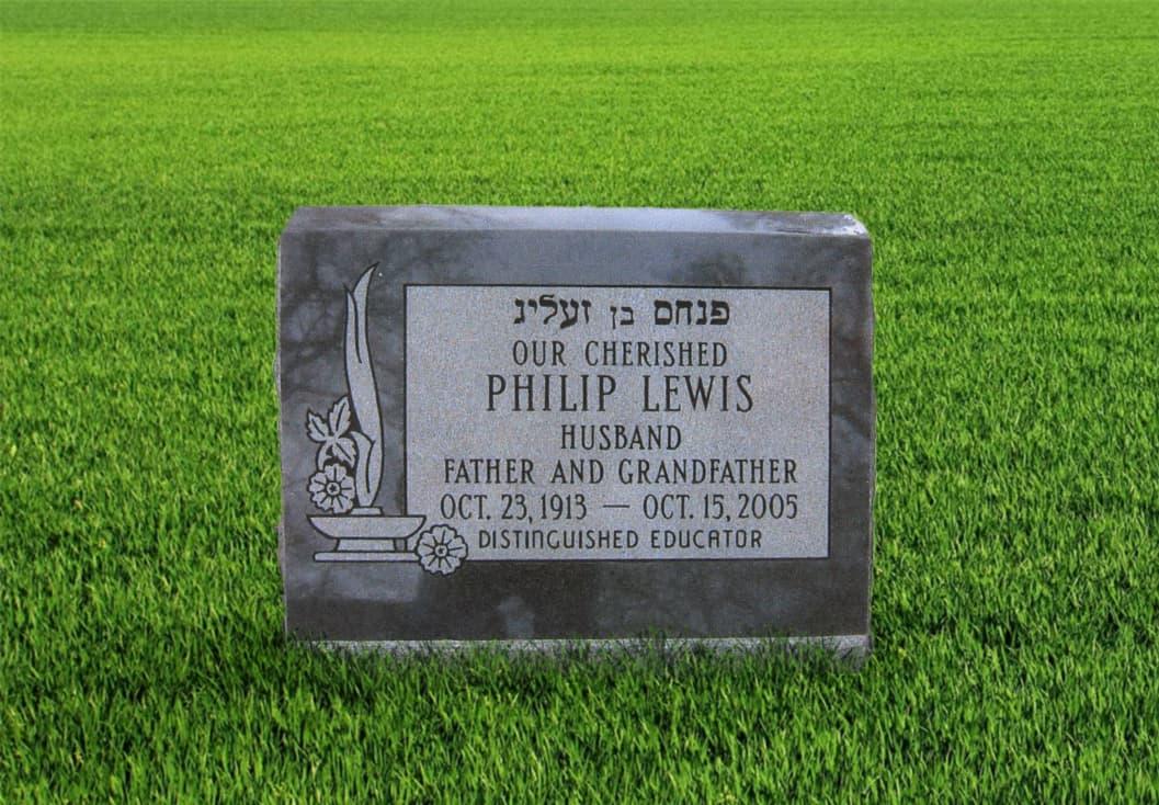 Jewish slant headstone in black granite