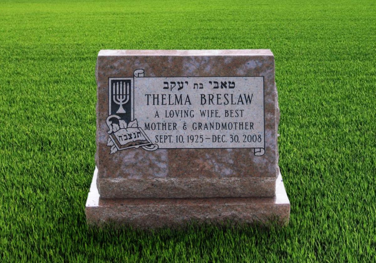 Red granite Jewish single slant on base