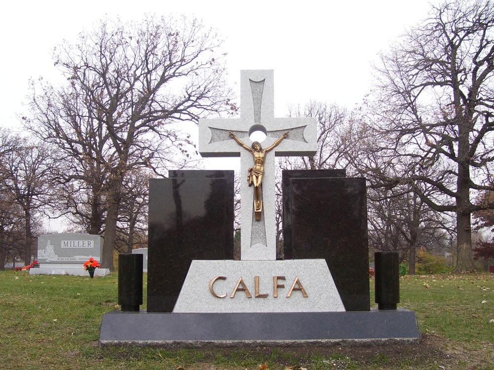Black and grey granite wing monument with bronze corpus of Jesus