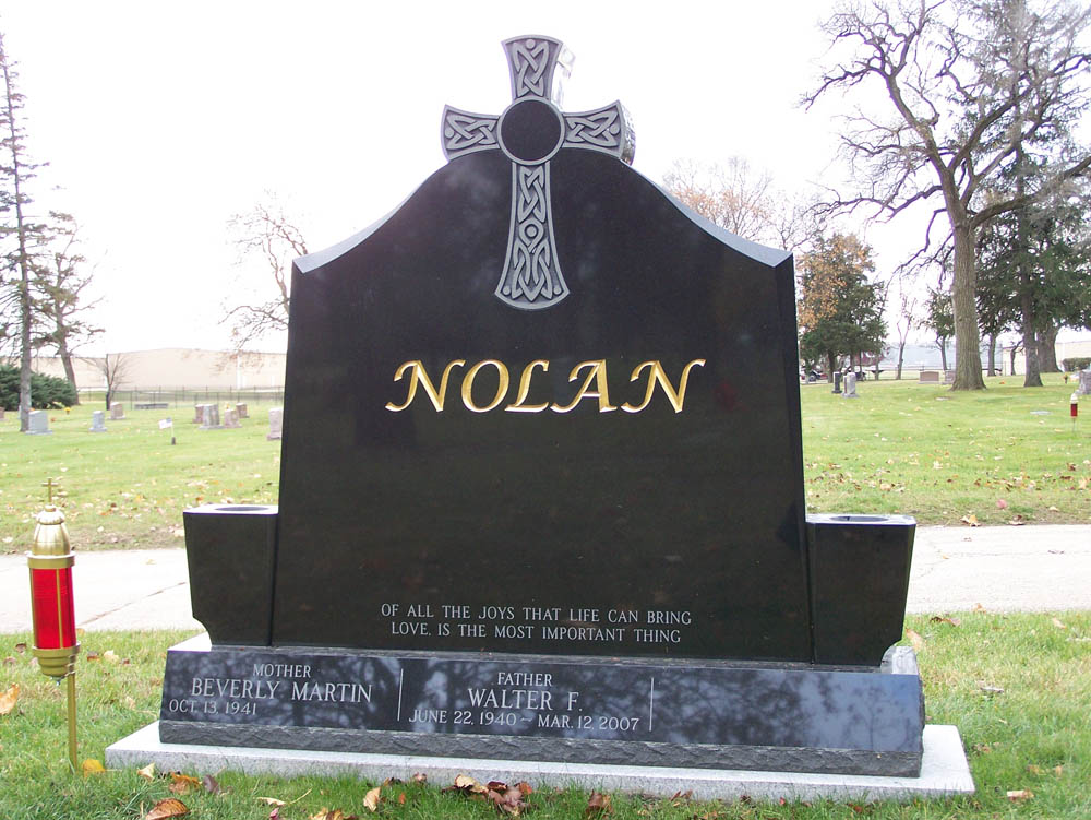 Black granite monument with Celtic cross and gold letters