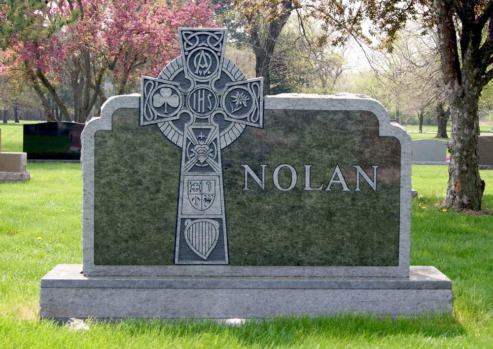 Green granite monument with personalized celtic cross