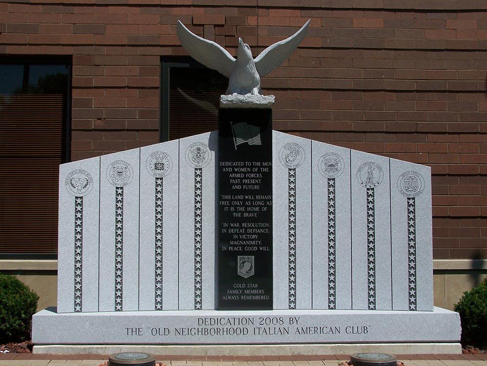 Italian American Club memorial with military emblems